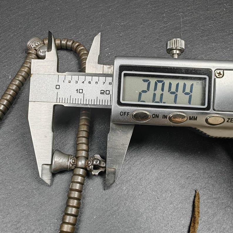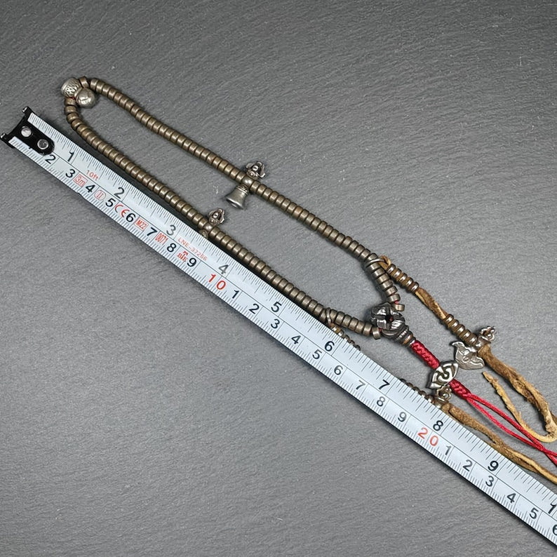 Bearing the marks of time, this metal prayer bead necklace remains unadorned yet dignified—just like the ascetics who embody perseverance and humility through life’s journeys.