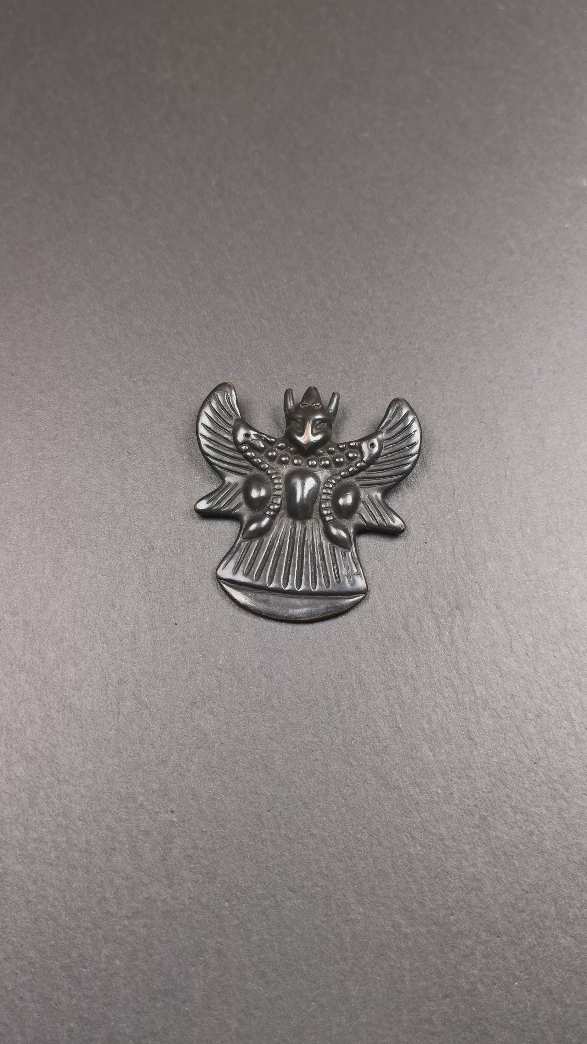 This Garuda amulet is collected from Yaqing Monastery Baiyu County Tibet,it's a handmade badge,amulet pandent, made of copper,about 40 years old.