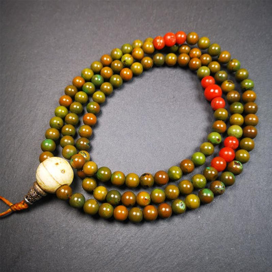 Old 8mm 108 Prayer Beads,with Unique Mix of Treasures