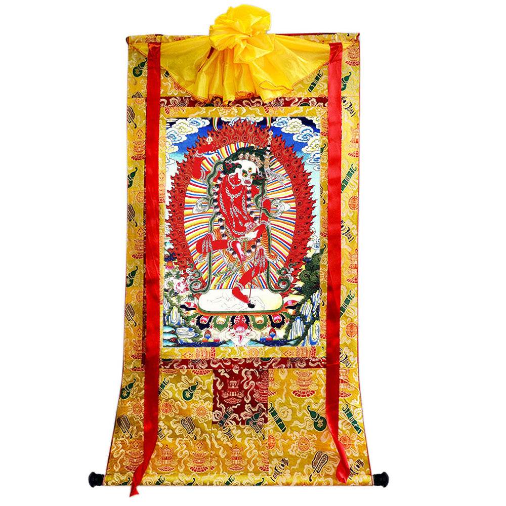 The pattern is printed on Tibetan cotton,the frame is hand framed by Tibetan craftsmen.