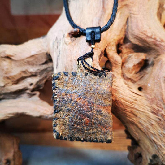 Gandhanra Antique Amulet Pendant,Stupa / Pagoda Tsa Tsa Mold on leather Sachet