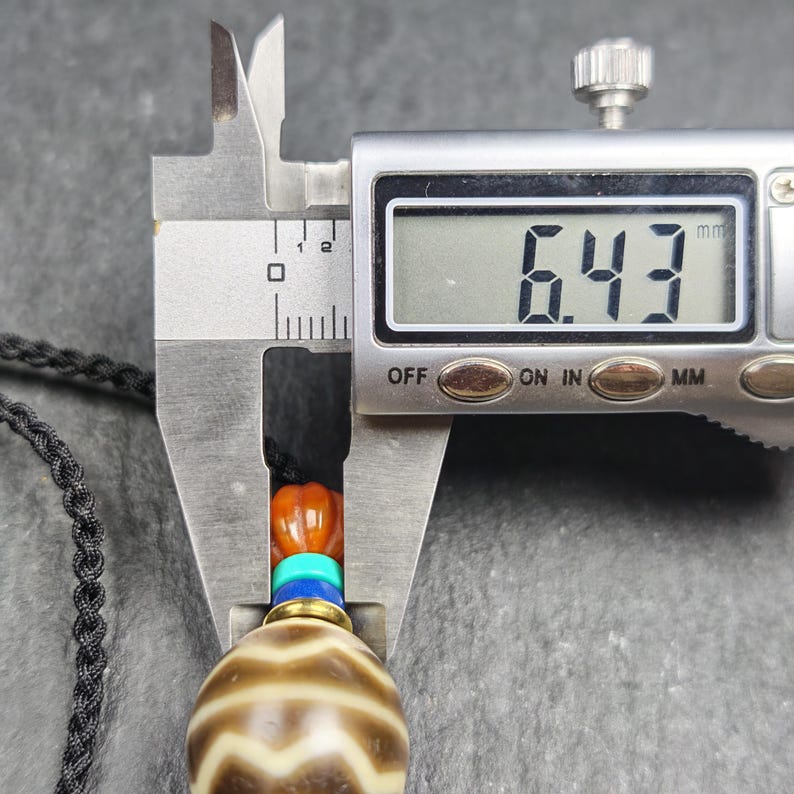 A venerable wave totem dalo Dzi bead — decades old,collected and blessed in Kathok monastery.