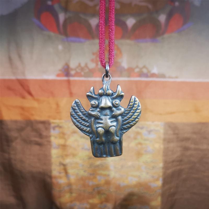 ❤This Garuda is collected from Yaqing Monastery Baiyu County Tibet,it's a handmade badge,amulet pandent, made of copper,about 60 years old.