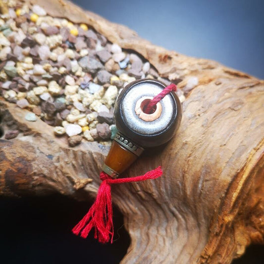 Sky Earth Dzi Guru Bead,T-drilled 3-Hole Mala Bead