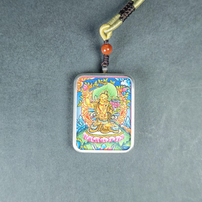 At its core lies a hand-painted Manjusri crafted by skilled Tibetan Thangka artists.