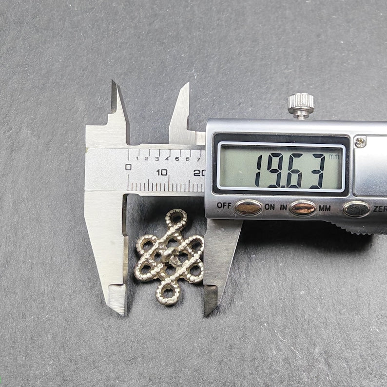 It is made of Silver-plated brass, size is 20*26mm,you can use it as a mala pendant or jewelry accessory.