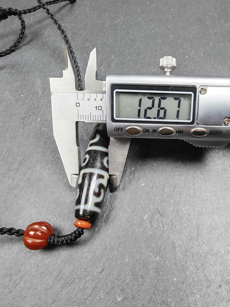 This Guru Rinpoche Three Realms Dzi measures about 50 mm x 12.6 mm.