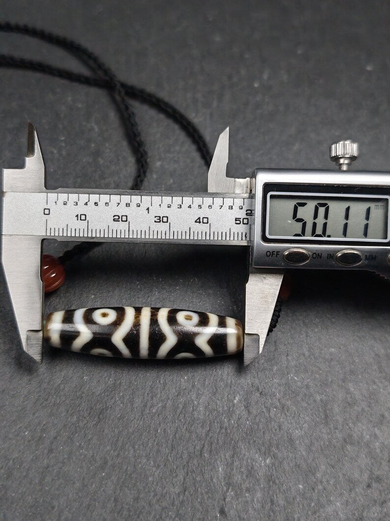 This mandala 6 eyes dzi bead measures about 50 mm x 13 mm.