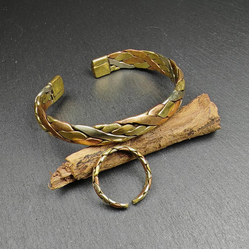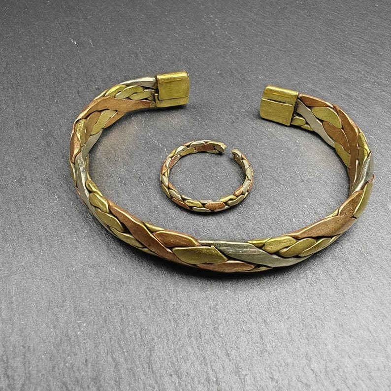 Tibetan Jewelry, Cuff Bracelet + Ring,Made of Bronze,Copper,Brass