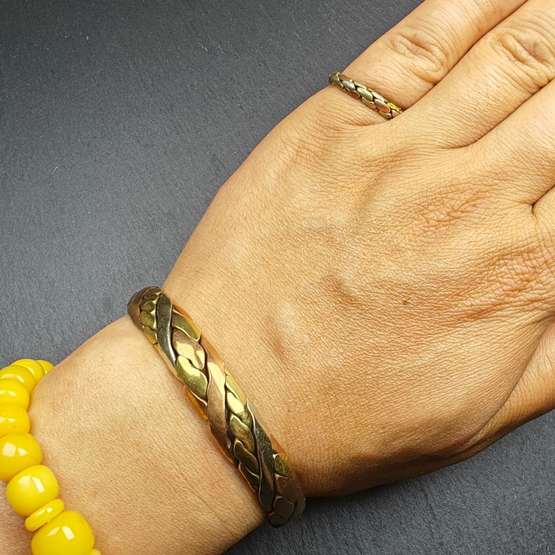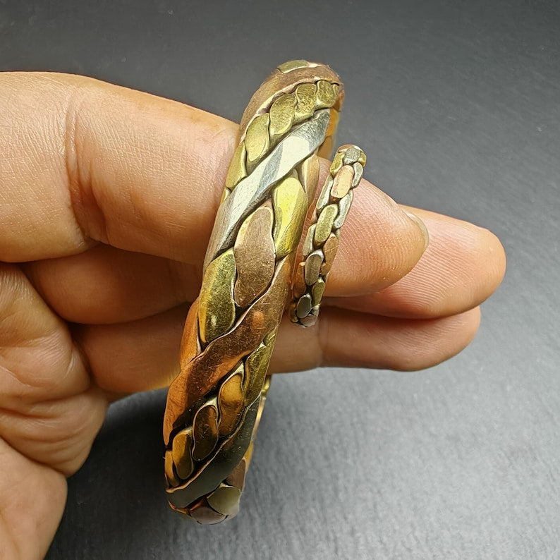 This bangle + ring were made by Tibetan craftsmen,and come from Hepo Town, Baiyu County, the birthplace of the famous Tibetan handicrafts.