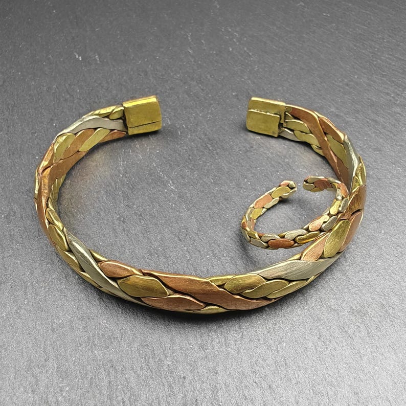 It is crafted from a variety of materials including brass and copper,using traditional Tibetan craftsmanship to twisted into one strand.