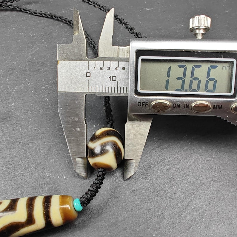 This 3 eyed dzi measures about 48 mm x 12 mm.