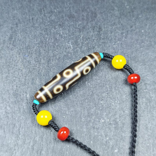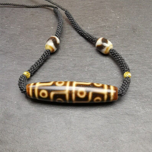 Vintage 9 Eyes Dzi Bead Necklace | Tibetan Dzi Amulet 54*13mm