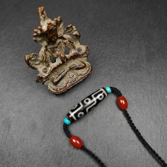 Vintage 9 Eyes Dzi Bead Necklace | Tibetan Dzi Amulet | Protection Charm | 42*11mm
