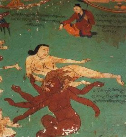 Der Aufstieg männlicher Machtstrukturen ging mit der Beraubung der ursprünglichen Heiligkeit der Frauen einher. Viele Zivilisationen waren daran beteiligt, Mythen abzuändern, um die ursprüngliche Heiligkeit der Frauen zu beseitigen. In Tibet wurde die Einführung buddhistischer Erzählungen zu einem entscheidenden Wendepunkt. Sie porträtierten die tibetische Muttergöttin als wilden und gierigen weiblichen Dämon und den ursprünglichen weiblichen Geist als störenden Rakshasa. In diesem Prozess bewegte sich die Gesellschaft allmählich vom Chaos zur Stabilität und Frauen wurden zu Opferobjekten.