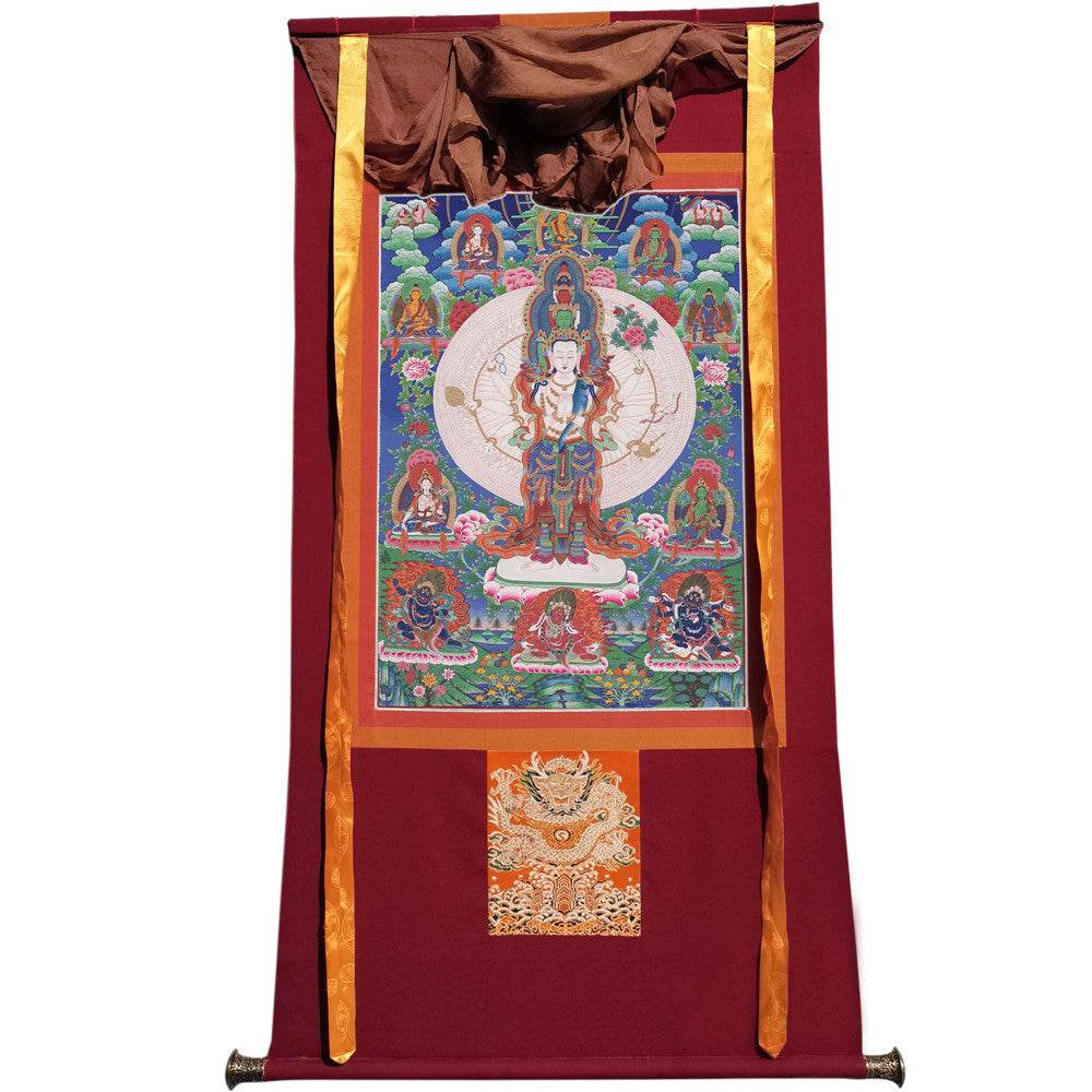Das Muster ist auf tibetische Baumwolle gedruckt, der Rahmen ist von tibetischen Handwerkern von Hand gefertigt.