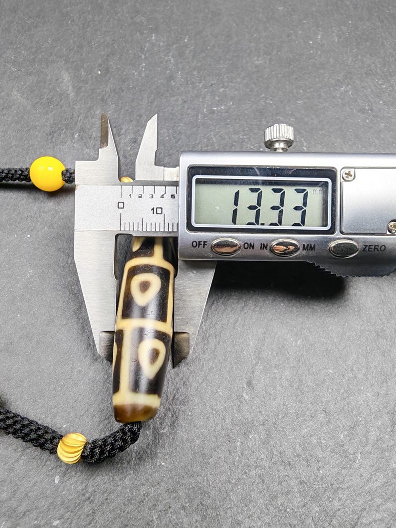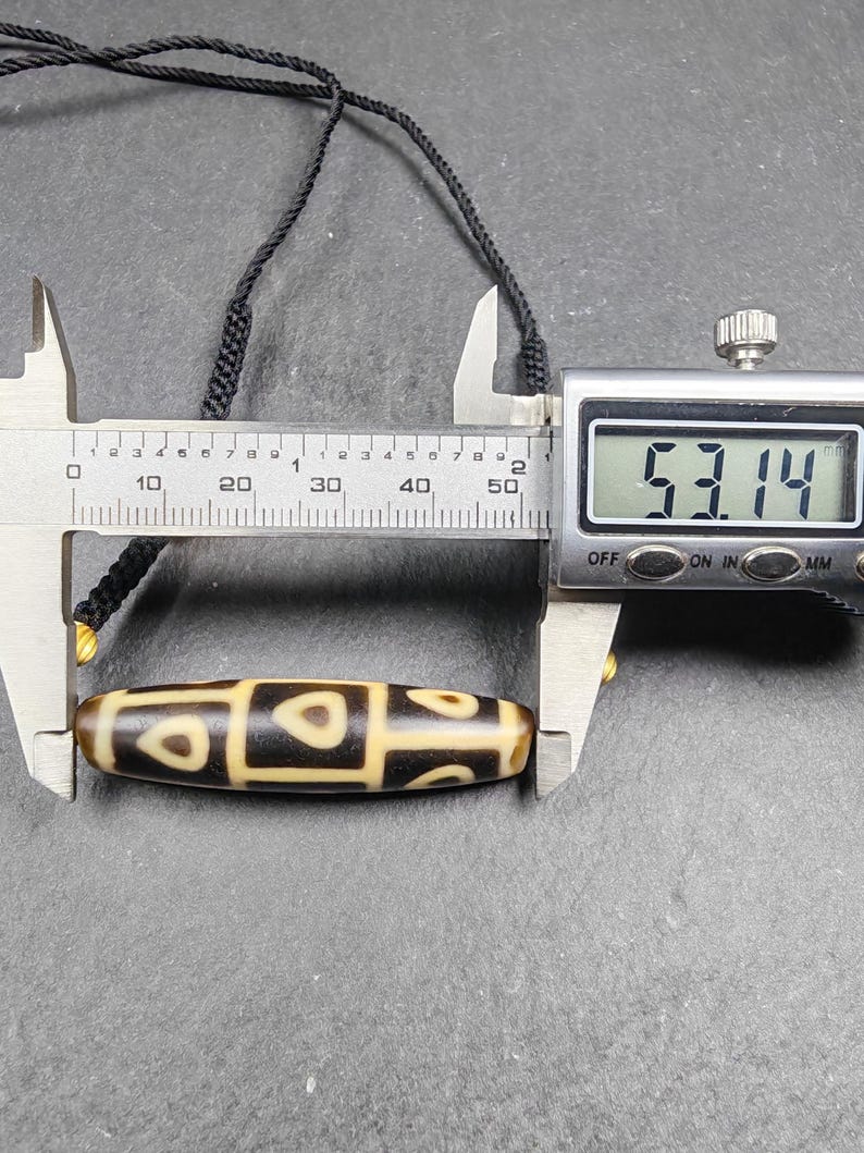 Please note that there is a dent on one side of this dzi, believed to be because this part of the agate was used in Tibetan medicine tradition.