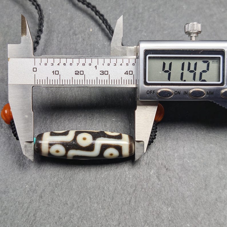 9 eyes dzi bead measures about 41mm x 12 mm.