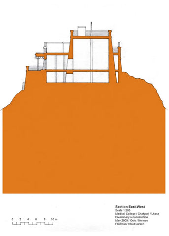 El Palacio de Potala y la Colina del Rey de la Medicina son los puntos de referencia más importantes de Lhasa. Tanto en la ciudad como en sus alrededores, la gente puede contemplar esta combinación icónica de paisajes. No importa dónde se encuentre, basta con mirar hacia el Palacio de Potala para determinar su dirección. En nuestro Atlas de Lhasa, destacamos especialmente la importancia de experimentar el trazado de la ciudad antigua desde la perspectiva de admirar el Palacio de Potala. Del mismo modo, la Colina del Rey de la Medicina y la Facultad de Medicina desempeñan un papel similar, que se ve acentuado por la construcción de nuevas carreteras.