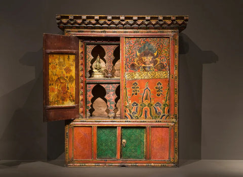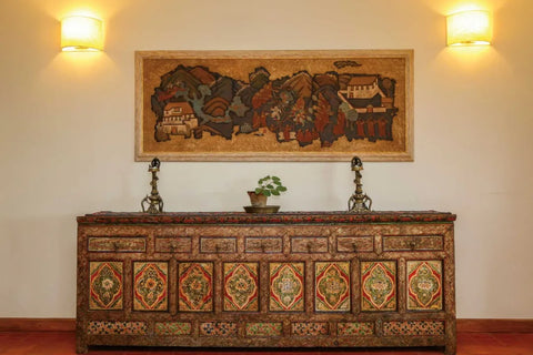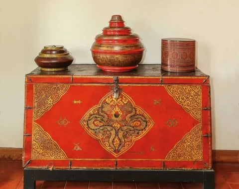 Entonces, ¿estos muebles de estilo tibetano realmente ayudan a reducir el deseo de acumular pertenencias? Y esas exquisitas cajas o baúles de estilo tibetano pintados, solo te harán elegir con cuidado qué objetos más preciados colocar en ellos, solo con pensarlo... ¿quizás sea hora de entender algo?