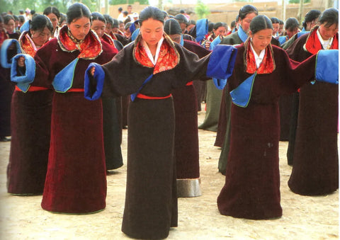 Los trajes tibetanos son una flor única.