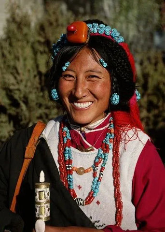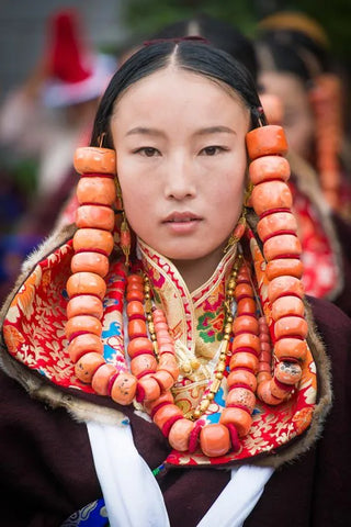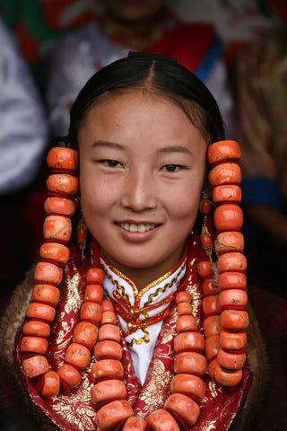 La gente suele usar coral como joyería, como collares, pendientes y anillos. Además, como parte de la dote de una mujer tibetana,