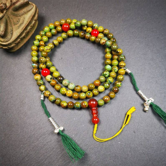 Gandhanra Old 108 Turquoise Beads Necklace Mala,Tibetan Prayer Beads for Meditation Practice ,Diameter 0.23", Circumference 24 inches