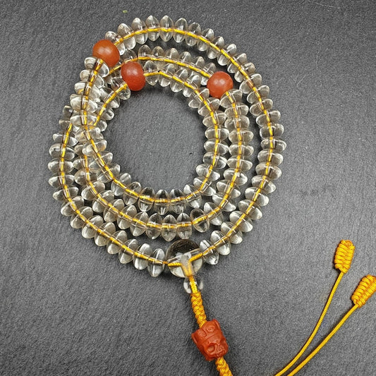 Old Tibetan Crystal Necklace Mala,Disk Type Prayer Beads
