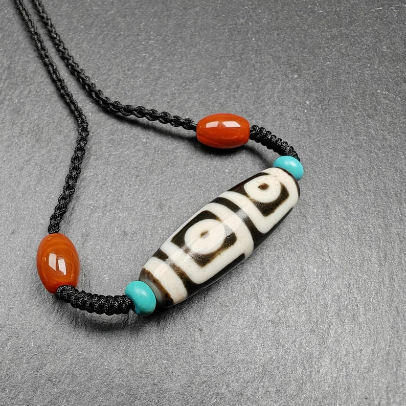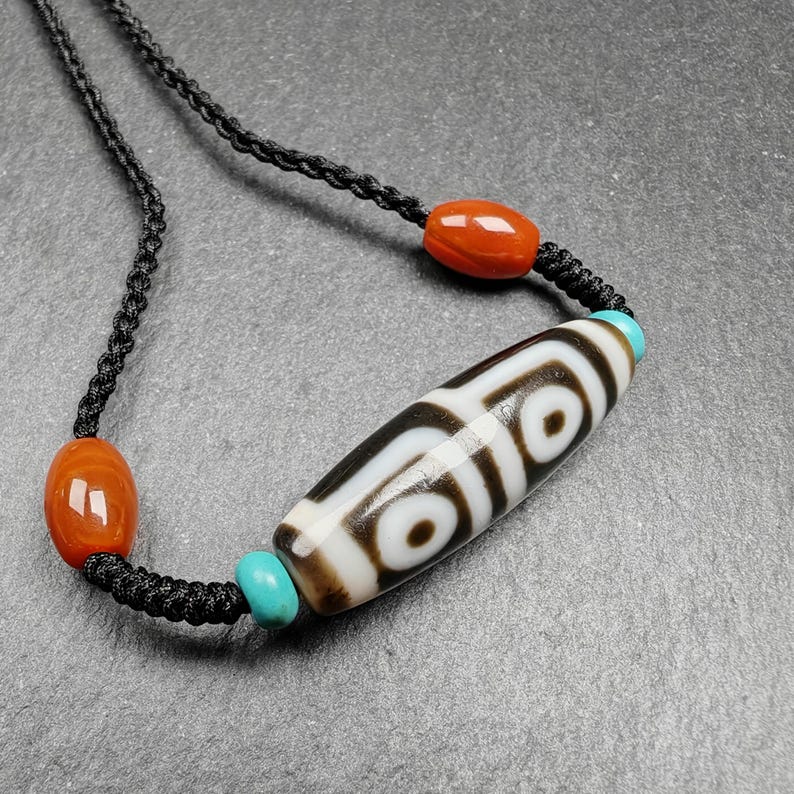 **Gandhanra Unique Tibetan 4 Eyes Dzi Bead Amulet Necklace – A Touch of Cultural Elegance and Protection**