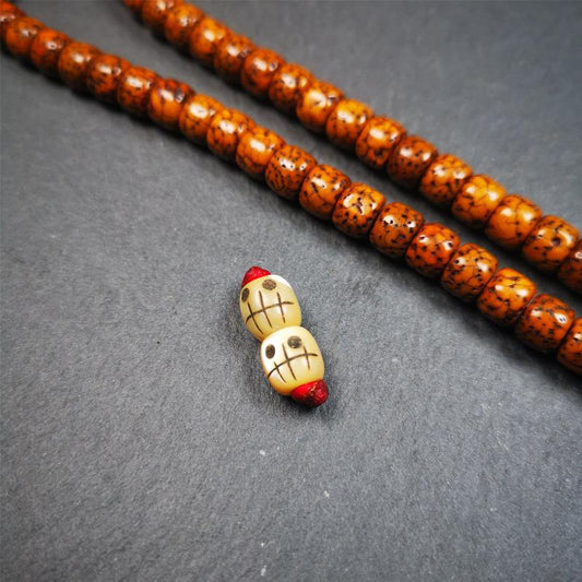 1 Pair of Yak Bone Skull Beads 0.4" × 0.5"