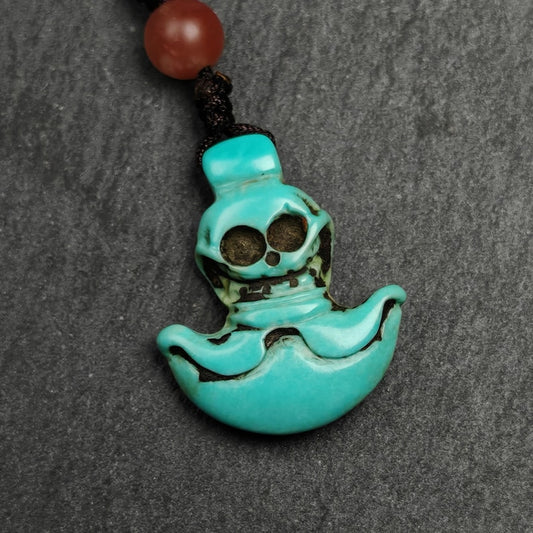 Old Turquoise Tibetan Citipai Skull Master Amulet,23×20mm