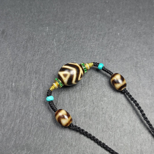 3 Eyes Dzi + Wave Dzi Beads Amulet