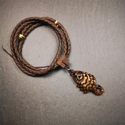 Amulet,Yak Bone Carved Skull Citipati Pendant