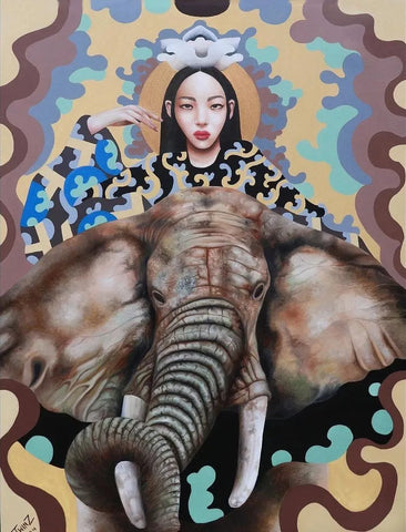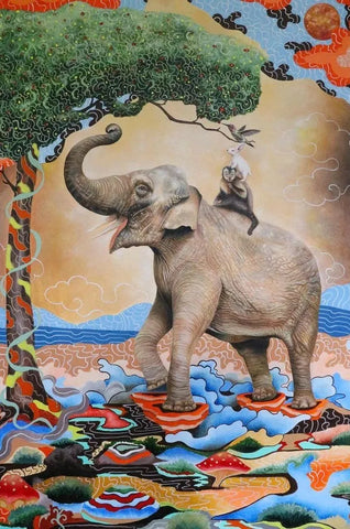 "Animal elements are a feature of our artwork, such as the elephant in 'Harmony of the Four Auspicious Beasts', which may look realistic at first glance, but the flat design eliminates its realism, which is quite interesting."