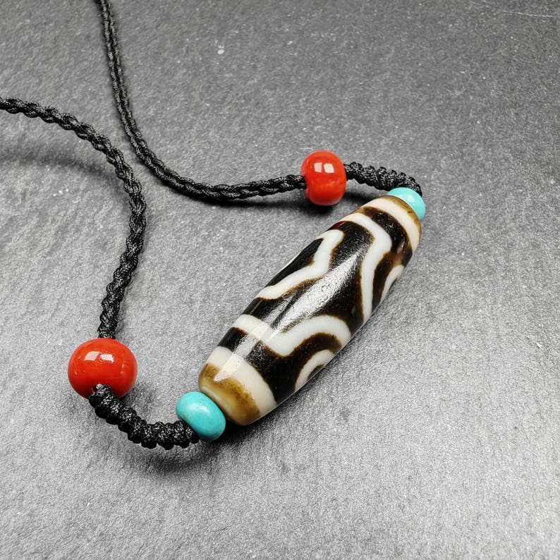 Revered in Tibetan culture, dzi beads are not just jewelry; they are believed to carry the power of protection and good fortune, creating a meaningful connection for the wearer.