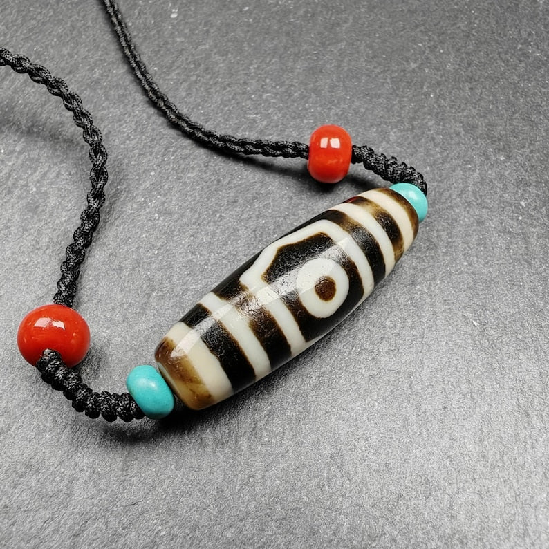 **Gandhanra Unique Tibetan 3 Eyes Dzi Bead Amulet Necklace – A Touch of Cultural Elegance and Protection**