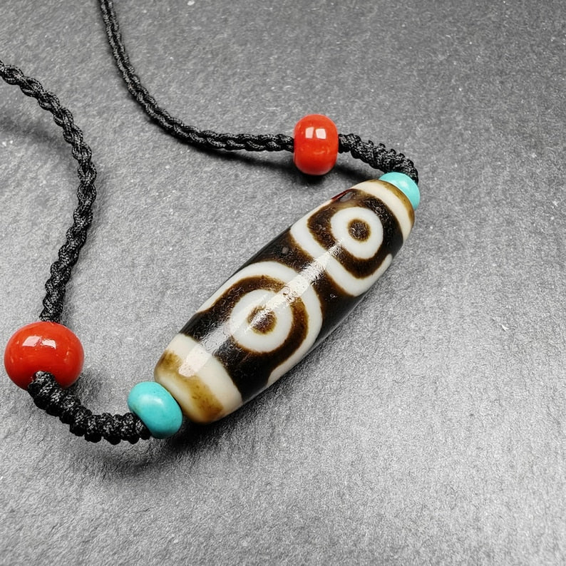 Discover the enchanting allure of our **Gandhanra Unique Tibetan 3 Eyes Dzi Bead Amulet Necklace**.