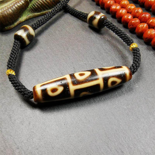 9 Eyes Dzi Bead Necklace,1.5" x 0.4"