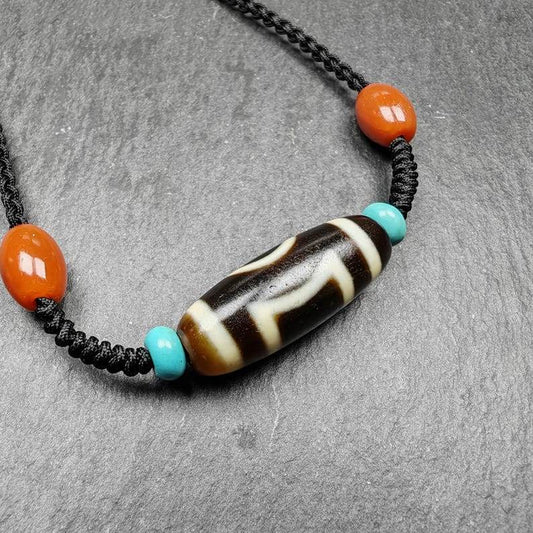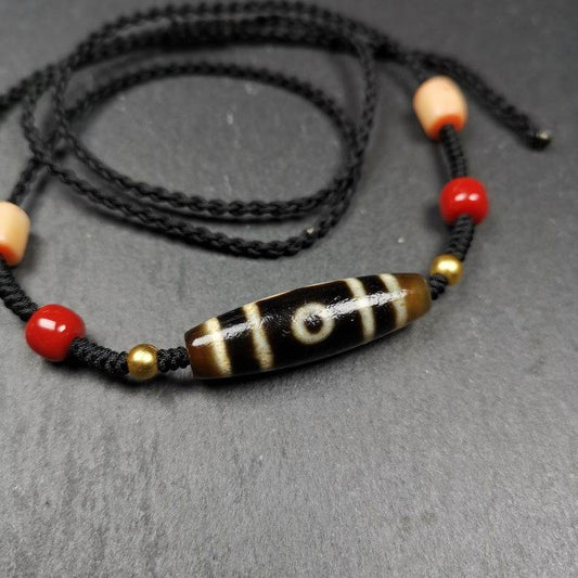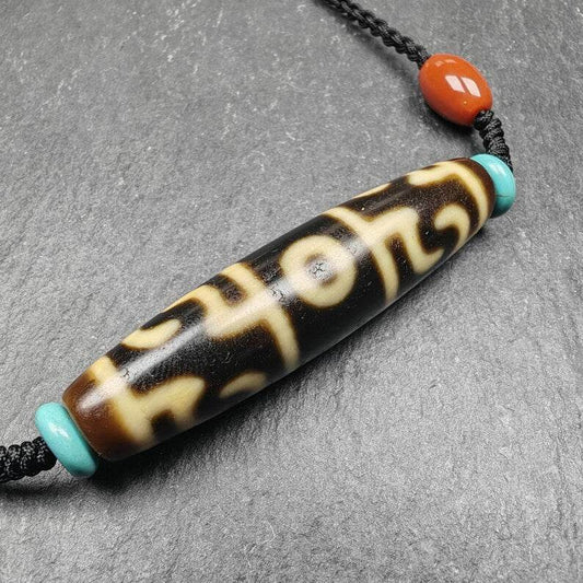 Tibetan 9 Eyes Dzi Bead Necklace | 1.5" x 0.4"