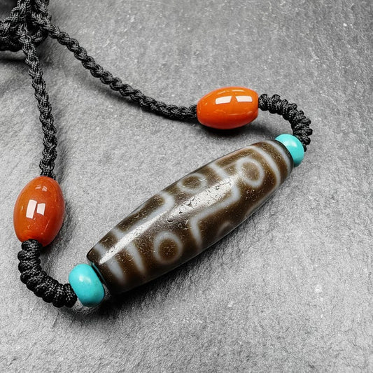 9 Eyes Dzi Bead Necklace 2.12" x 0.47"