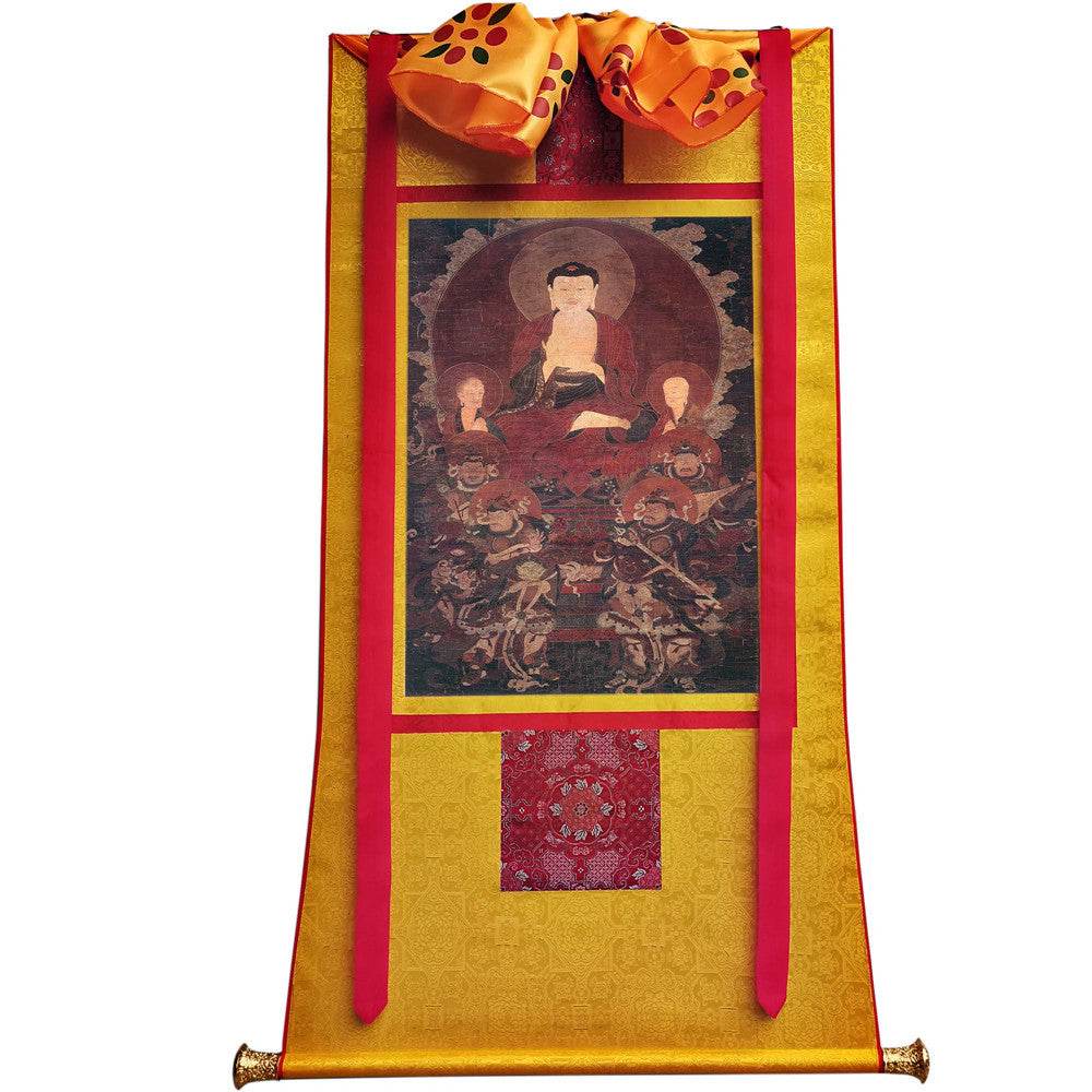 The pattern is printed on Tibetan cotton,the frame is hand framed by Tibetan craftsmen.