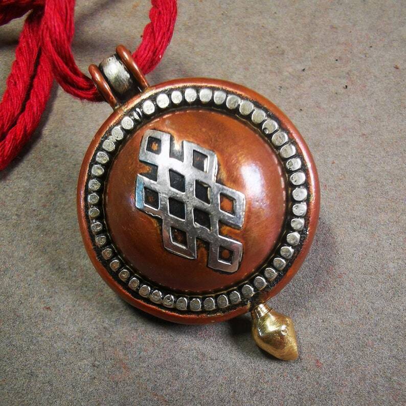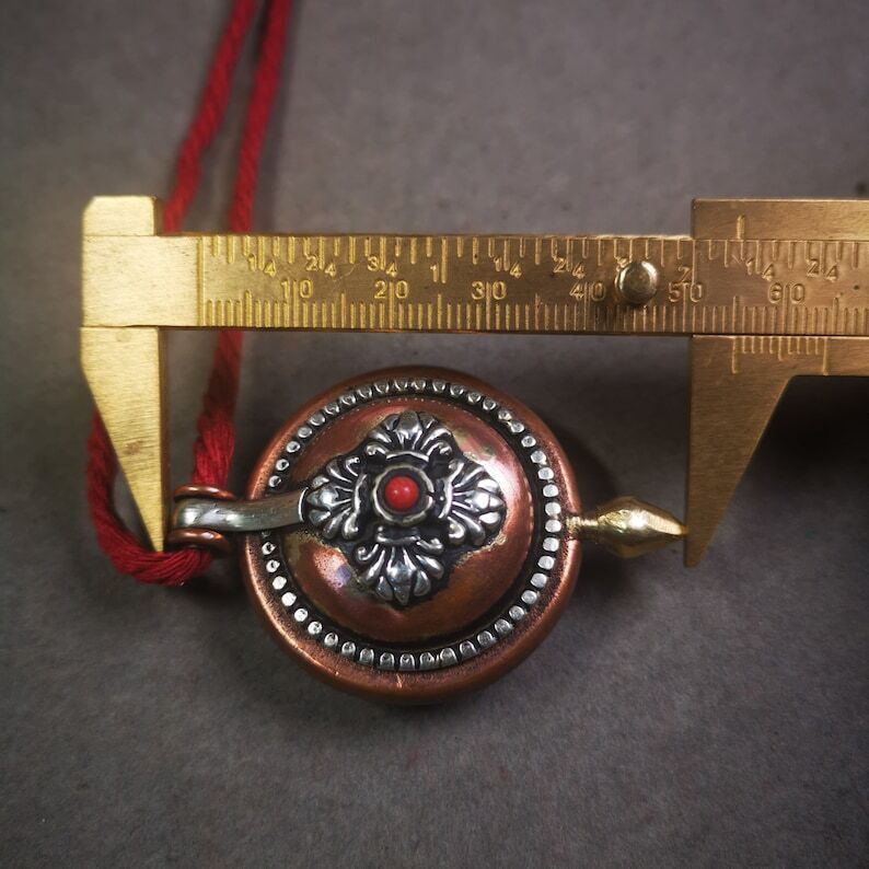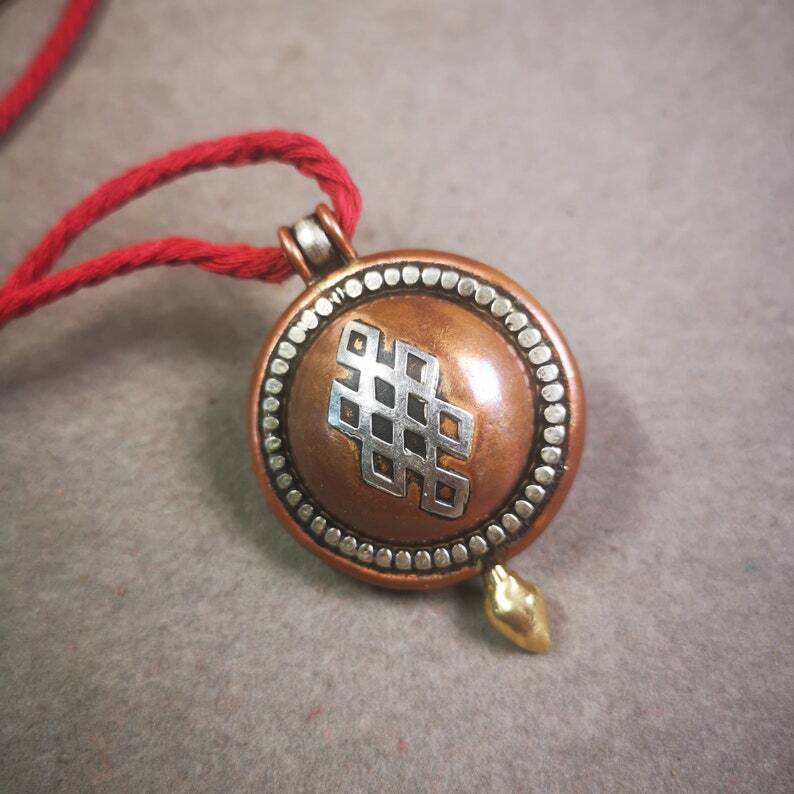 There is a white copper cross vajra carved on the front,and a lucky symbol on the back.