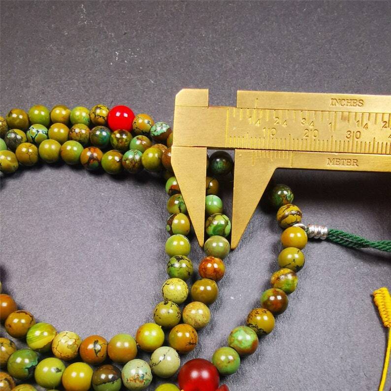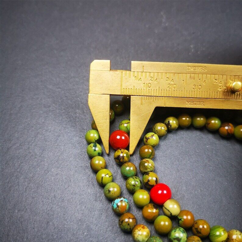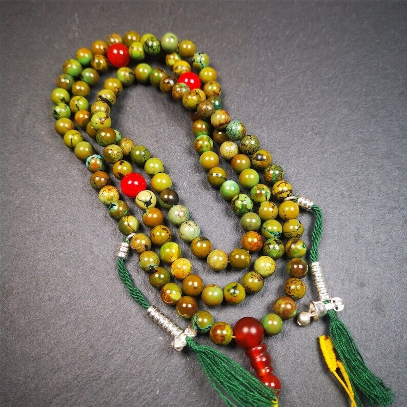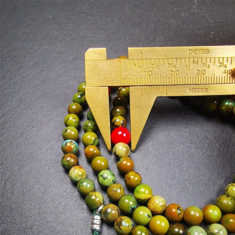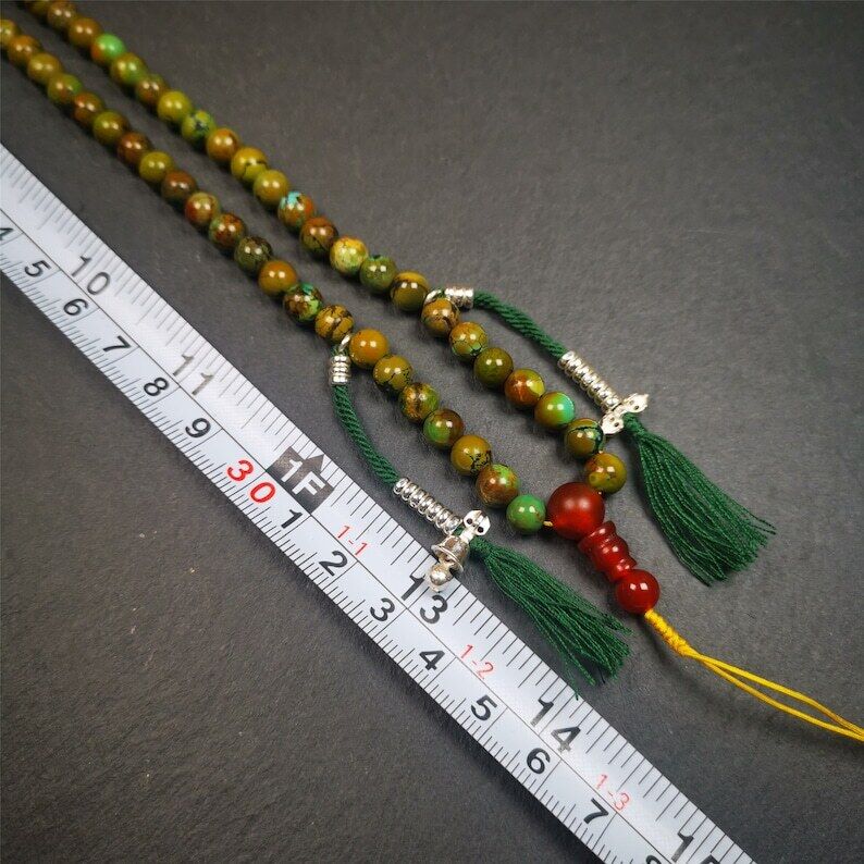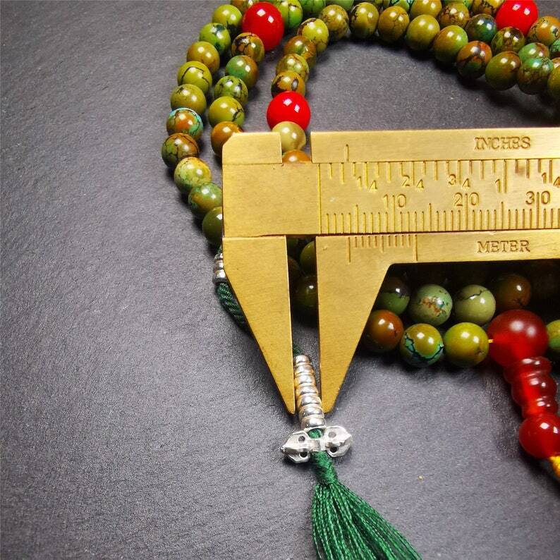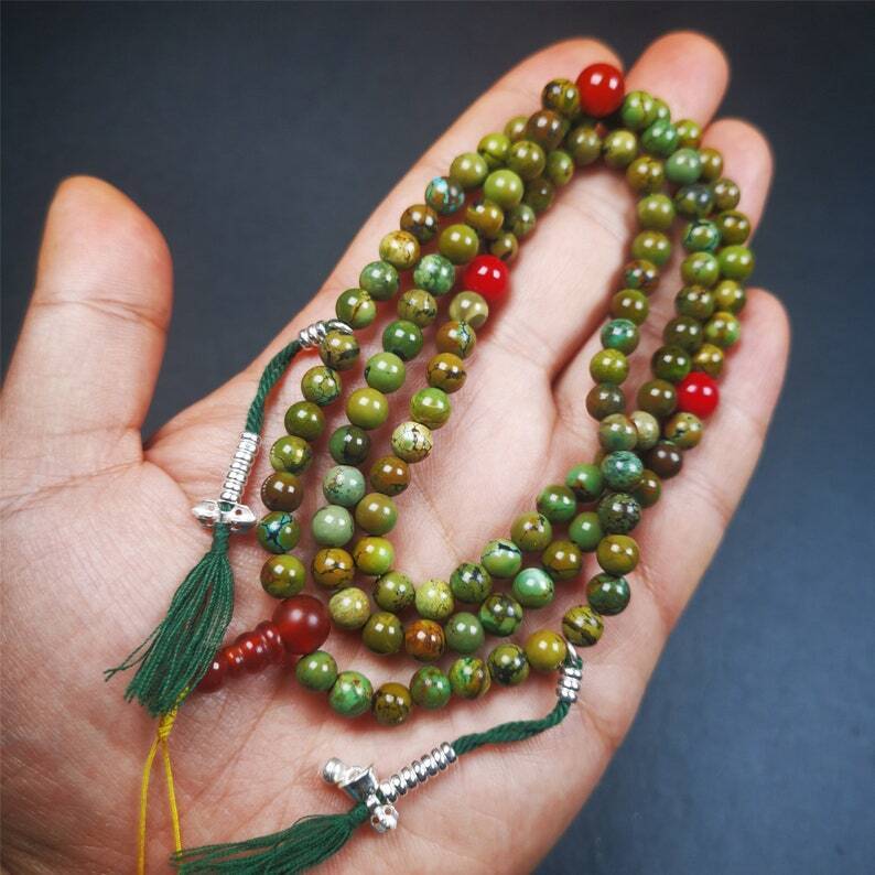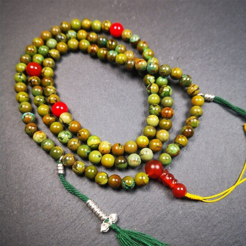Old 108 Turquoise Beads Mala,Tibetan Prayer Beads 0.32"