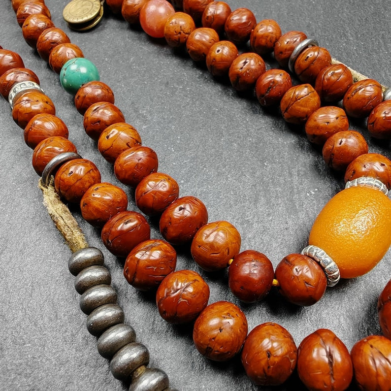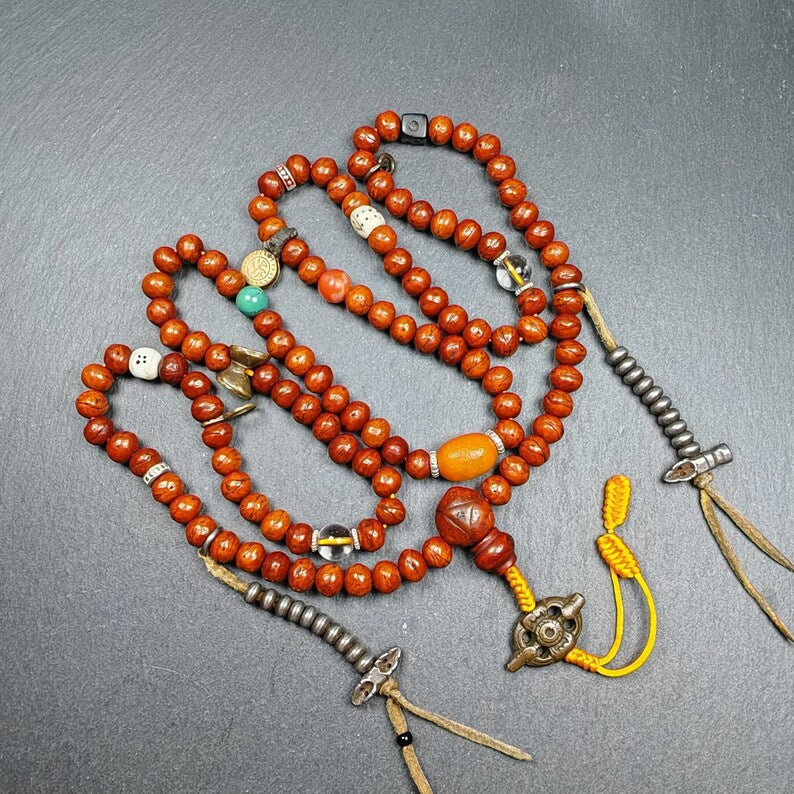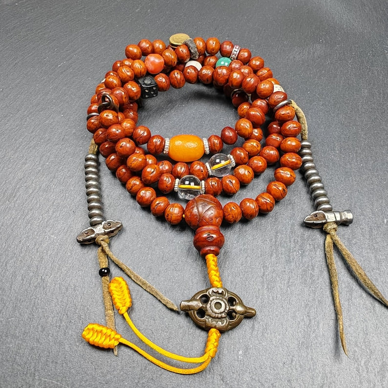 This old 108 Bodhi seed mala necklace was collected from the Kham area of Tibet,blessed in the Yachen Gar Monastery,approximately 40 years old.