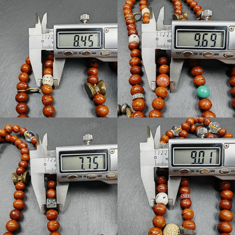 The mala has been re-strung with multiple accessories, making it a truly unique and special piece.
