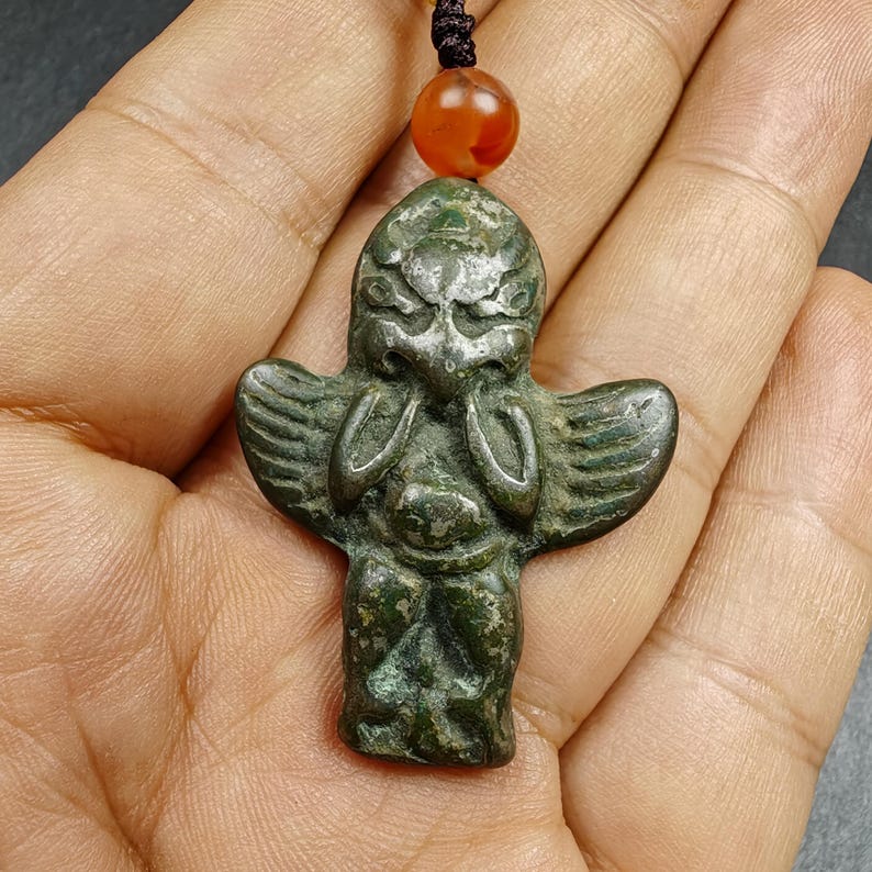 With nearly 50 years of history, this pendant bears the natural patina of time—each imperfection a testament to its authenticity. The intricate detailing of the Garuda, the golden-winged bird of Buddhist lore, symbolizes protection, strength, and divine power.