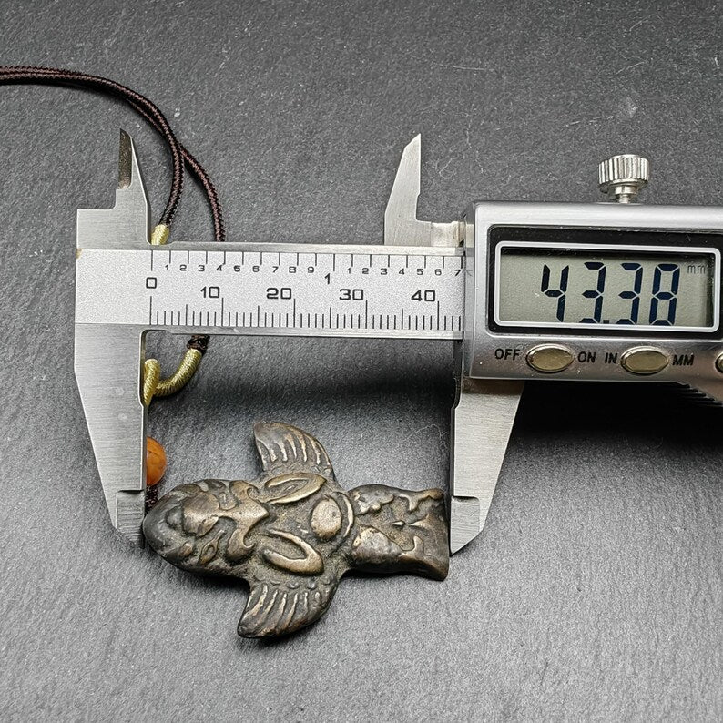 Handcrafted with devotion, this antique Garuda amulet carries the profound blessings of Tibetan Buddhism. Meticulously consecrated by a revered Lama at Kathok Monastery, it serves as a powerful spiritual companion, infused with sacred energy and timeless wisdom.