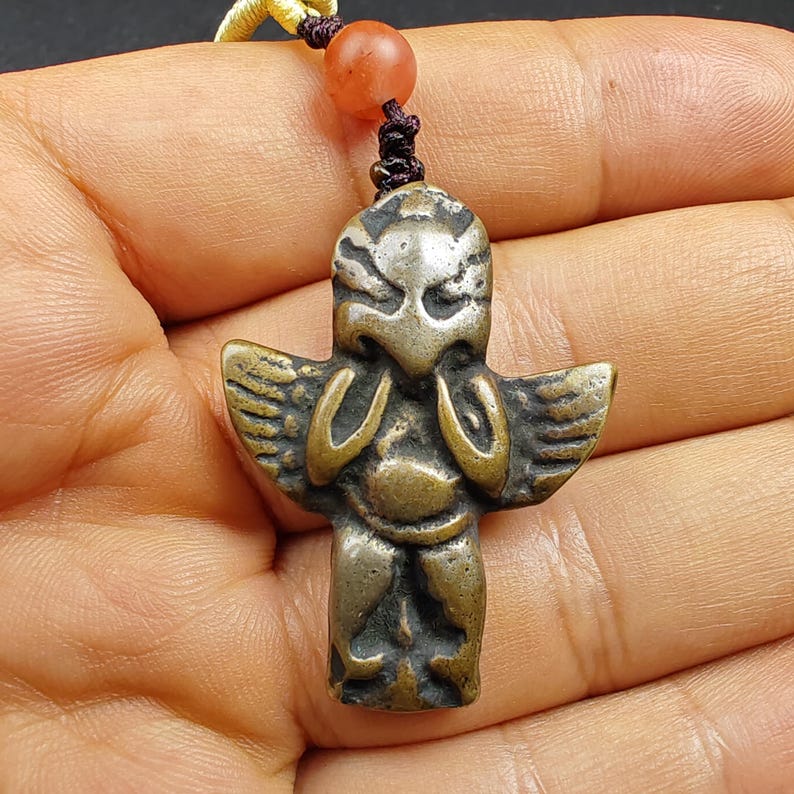 With nearly 50 years of history, this pendant bears the natural patina of time—each imperfection a testament to its authenticity. The intricate detailing of the Garuda, the golden-winged bird of Buddhist lore, symbolizes protection, strength, and divine power.