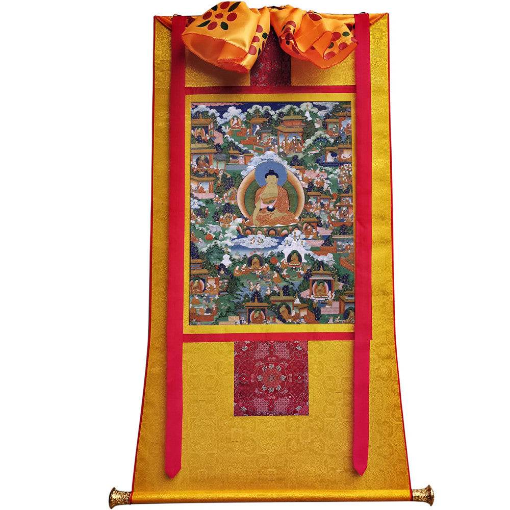 The pattern is printed on Tibetan cotton,the frame is hand framed by Tibetan craftsmen.