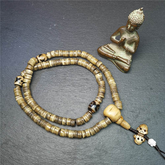 Old Kapala Skull Bone Mala,Disk Shape